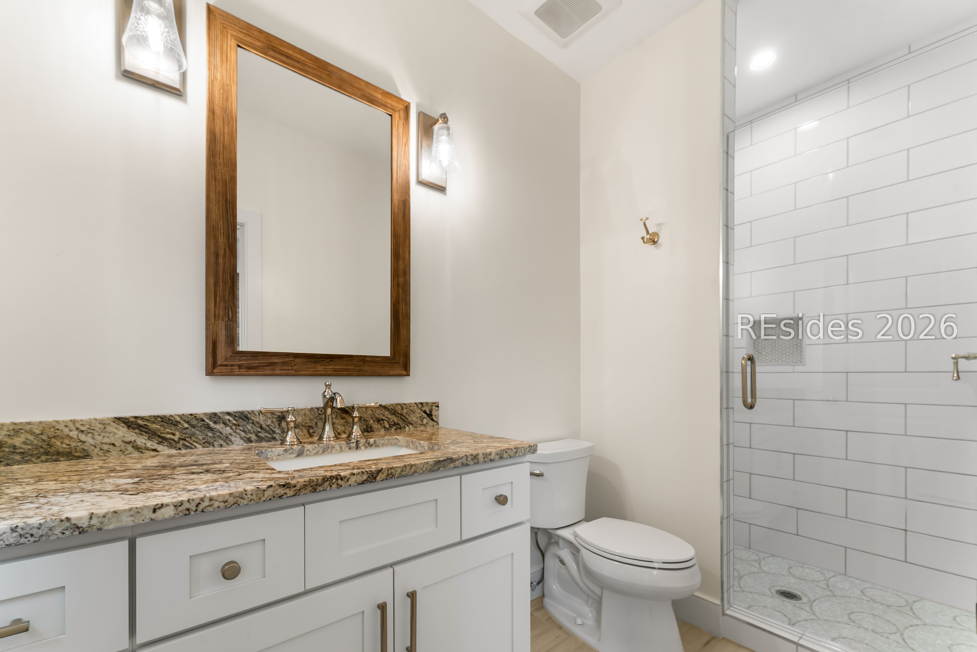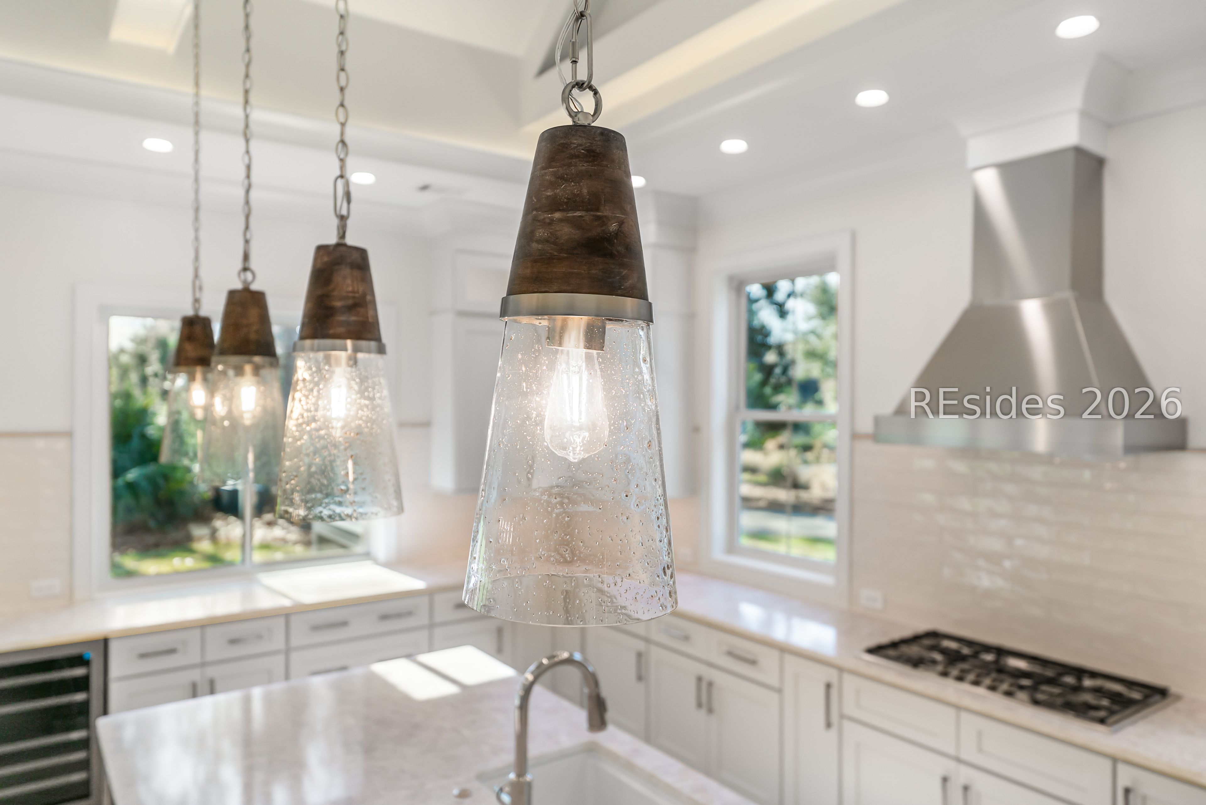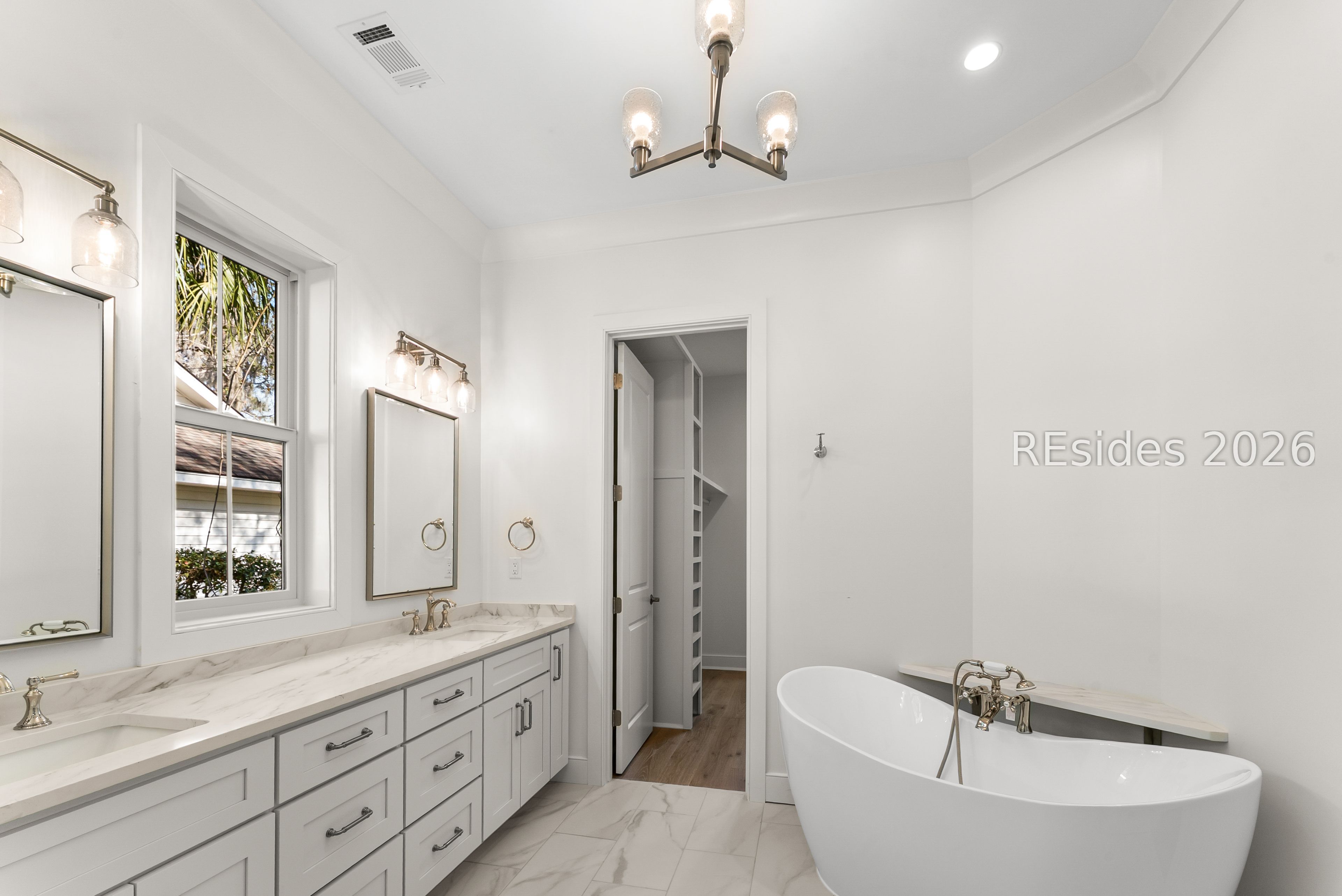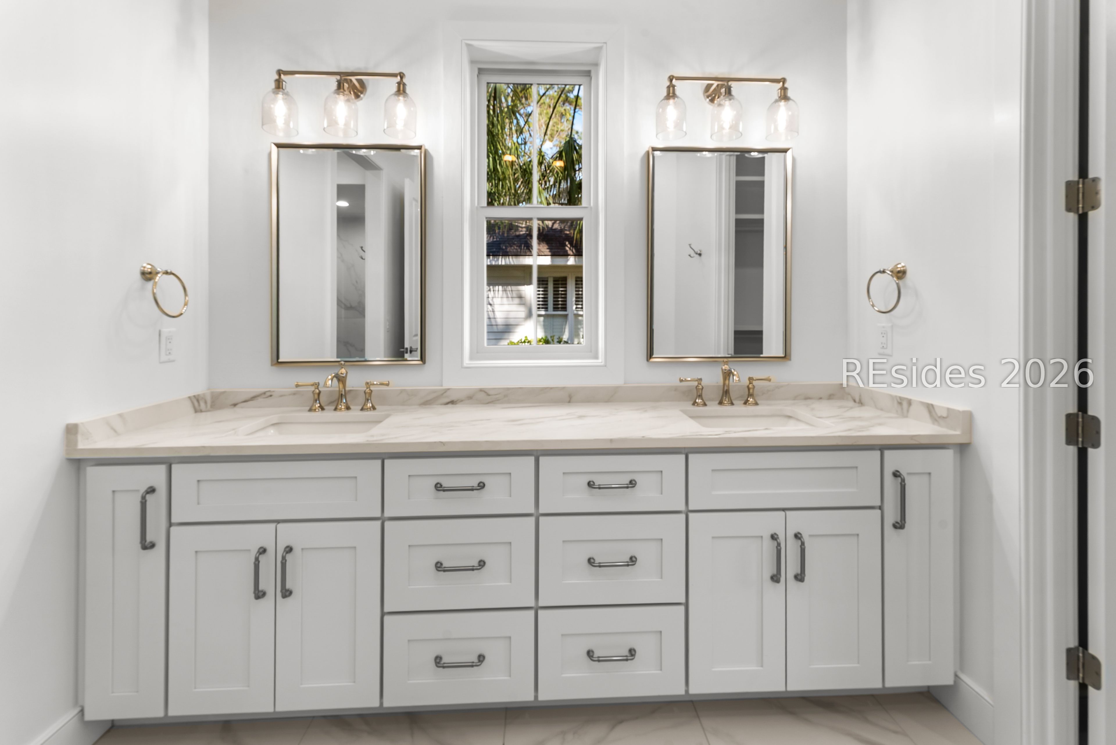 Designed for elevated coastal living and effortless entertaining, this custom residence is a masterclass in craftsmanship, scale, and thoughtful design. At its heart, a spectacular 21' x 41' Great Room seamlessly unites the living, dining, and kitchen spaces beneath a vaulted, beamed ceiling anchored by a gas fireplace. A dramatic 16-foot fully openable Andersen folding glass door dissolves the boundary between indoors and out, opening to a screened porch perfectly level with the main living space to create a true indoor-outdoor great room experience.The professional-caliber kitchen is both stunning and functional, centered around an expansive 9' island and outfitted with a full suite of Thermador appliances, including a refrigerator/freezer, double wall ovens, gas cooktop, drawer microwave, and dishwasher. Quartz countertops, a custom-built hood, designer tile backsplash, and a walk-in pantry elevate the space, while a dedicated wine refrigerator and sliding pass-through window provide seamless service to the outdoor grilling area.The screened porch itself is a showpiece, featuring retractable Phantom screens for unobstructed views, a vaulted ceiling, and a gas fireplace with a 200-year-old reclaimed barn mantel. Just beyond, the outdoor grill area includes a gas connection and stone counters for effortless entertaining.A private study sits behind frosted glass pocket doors, highlighted by a tray ceiling and shiplap red oak accent wall. The primary suite is a serene retreat, offering a tray ceiling, private terrace with sweeping sunrise views over the golf course, dual walk-in closets with custom built-ins, and a spa-inspired bath with soaking tub, dual vanities, and an oversized tiled shower.Two spacious first-floor guest suites, each accommodating king beds and featuring ensuite baths and shiplap accents, are thoughtfully separated for privacy. A well-appointed laundry room, owners' entrance, and oversized three-car garage with EV charging complete the main level. Upstairs, a large bonus room with private bath offers flexible living space, while an exceptional 500-square-foot conditioned storage room provides rare, full-height versatility. Additional features include, spray foam insulation, premium Andersen windows, wide-plank French oak floors, whole-house water filtration, and multi-zone HVAC, this home delivers luxury without compromise-designed for how people truly live.